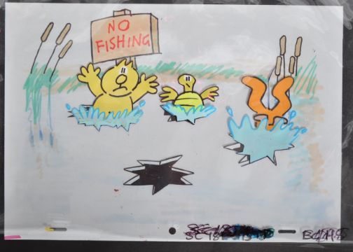 Animation Artwork - Henry's Cat (1980s) - created by Stan Hayward and Bob Godfrey (Roobarb & Custard) - a collection of x4 original hand painted production used animation acetate artwork cels. One multi-layered. Each annotated with production markings to the margin, all with original painted backing sheets present. Rare memorabilia from the classic cartoon series. Backing sheets A4, acetates larger. Henry's Cat is a British animated children's television series, created by Stan Hayward and directed by Bob Godfrey, who was also the producer of Roobarb and Noah and Nelly in... SkylArk. The show starred a yellow feline, known only as Henry's Cat, and his many friends and enemies. In every episode, narration and character voices were provided by Bob Godfrey. Henry's Cat was first screened by BBC Television in the United Kingdom on 12 September 1983, and aired 51 episodes. Five series were made in total.