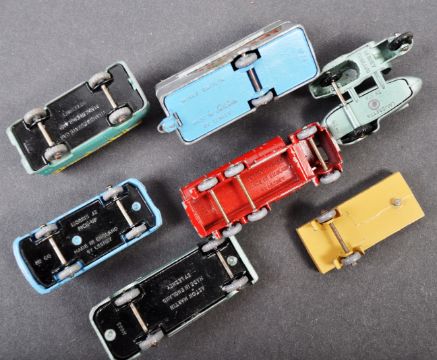 A collection of 4x original vintage Moko Lesney Matchbox Series made diecast models comprising: 36 Lambretta & Side Car, 70 Thames Estate Car GPW, 74 Mobile Canteen GPW, 53 Aston Martin GPW, 11 Petrol Tanker GPW, 10 Mechanical Horse (trailer only) and 60 Morris J2 Pickup. Models in good condition within original boxes (most missing some flaps). Good examples.