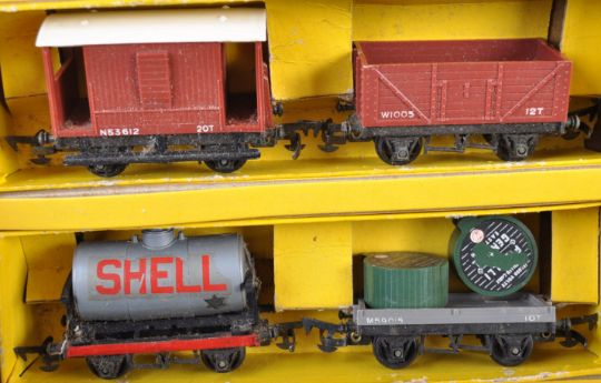 Two original vintage Triang & Lima made 00 gauge model railway locomotive train set engine sets comprising Triang REX set and a Lima LNER 8920 train with wagons and accessories. Good vintage sets.