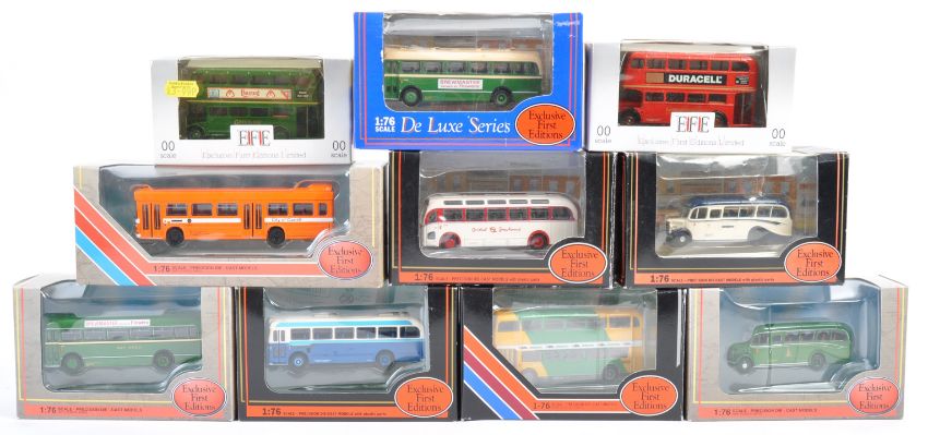 A collection of 10x Gilbow made EFE Exclusive First Editions 00 gauge 1/76 scale diecast model buses. Includes: Leyland, Bedford, mostly Bristol and others. All models appear mint within original boxes. A good collection of diecast bus models.