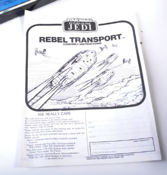 An original vintage Palitoy made Star Wars action figure playset ' Rebel Transport Vehicle '. The playset including the original escape hatch, rear guns and even retaining the original instruction sheet and some original backpacks. Housed within its Return Of The Jedi box, with original inners.
