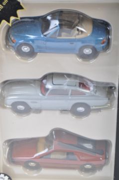 A collection of 10+ assorted Corgi & other James Bond scale diecast models to include: CC99102 triple car set, 65102 Toyota 2000GT, 04901, 04601 along with many others. All appear mint within original boxes. Good collection.