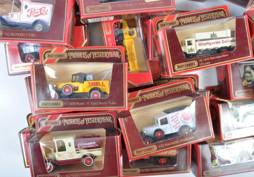 A collection of 40x assorted original Matchbox Models Of Yesteryear boxed scale diecast models from the Y-series. Largely advertising related with some haulage vehicles present. All appearing unused, within original boxes. Great collection