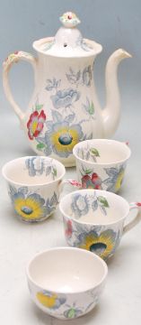 A collection of 20th century mixed china ceramic table ware to include Clarice Cliff water jug, Mason’s “Wild Rose” tea set comprising of teapot and four cups, Aynsley sugar bowl and vase, Royal Kent teapot, sugar bowl and creamer.