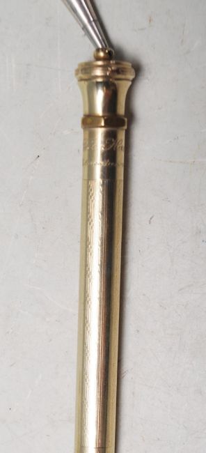 A collection of vintage pens and pencils to include a Waterman ink pen having a 14ct gold nib, a Parker ink pen, a gilt Eversharp pencil, a gilt ' The Handy ' pencil, a triangular shaped pencil, a Caran D'Ache pencil and a small gilt antique pencil.