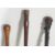 A collection of four vintage late 20th century hardwood walking sticks comprising of one having a wood effect handle, two walking sticks having a round knob handle one having a bolt shaped handle.