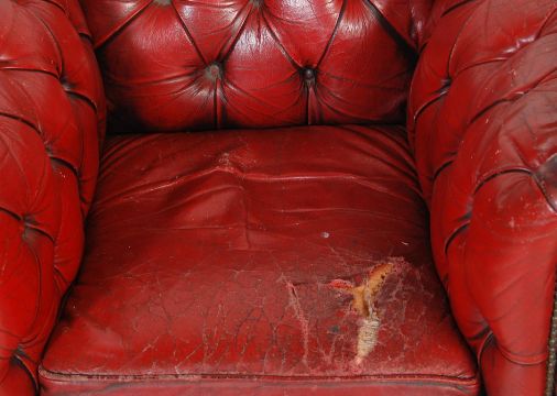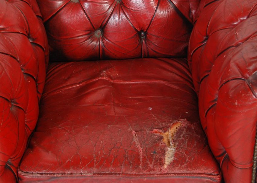 A group of three 20th century Oxblood leather chesterfield club armchairs. The arm with button backing to the leather upholstery having shaped barrel arms and backrest.Measure 63 H x 98 W x 82 D