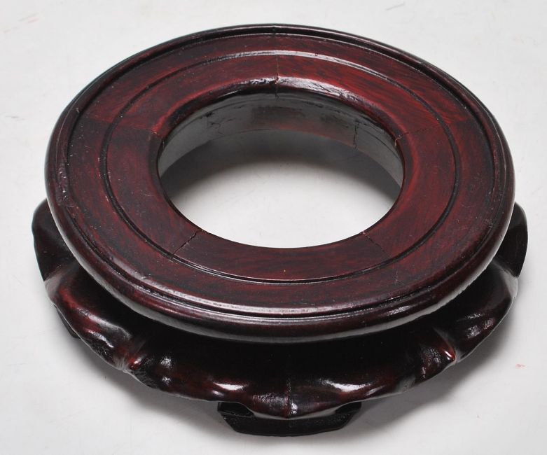 An antique 19th century Chinese famille rose bowl / dish on stand having fine polychrome floral decoration. Comes with carved hardwood stand. Four character mark to the base dated 1861. 12cm high.