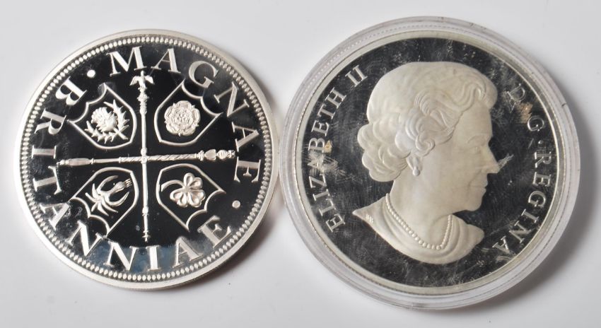 Two 5oz .999Ag pure silver coins to include a 2015 Canada 50 Dollars 5 oz. Fine Silver Hologram Coin - Lustrous Maple Leaves and a Boudica 'Warrior Queen' 5oz Silver Medal coin.