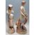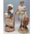 A late 19th / early 20th Century bisque neo classical figurine in the form of a man bearing a fruit basket with a lion raised on a naturalistic base, traces of a blue clay applied mark to base (likely Jean Gille / Vion & Baury) together with a later figurine of a lady holding a water jug (unmarked to the base). Tallest measures 41.5cm tall.