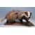 Of Taxidermy interest - A large early 20th Century taxidermy specimen of a snarling badger having glass inset eyes raised on a wooden plinth base facing right. Measures 63cm long.