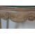 An early 20th century stripped mahogany occasional table / side table of a square form with silk embroidery decoration to the top, scrolled edges raised on shaped legs painted in white.