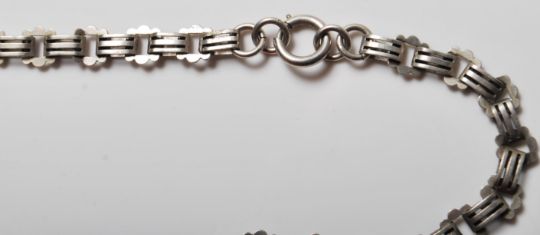 A 19th Century Victorian antique silver hallmarked locket and collar necklace having a gate linked chain with a large oval locket with applied rose motif. Hallmarked Birmingham 1876, makers marks for J & F.S. Chain measures 40cm, locket drop measures 7cm. Weight 32.5g.