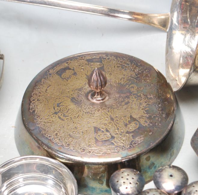 A collection of silver plated wares dating from the early 20th century century  to include flatware's, ladle, bon bon dishes, condiments pots and other items