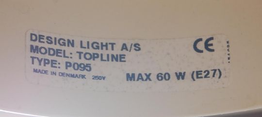 A retro vintage industrial enamel lightshade in the manner of Louis Poulsen The light has a circular curved UFO style shade and is decorated in a white colourway. Stamped made in Denmark to the  Measures 42cm wide.