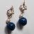 A pair of early 20th Century Edwardian antique drop earrings having two pearl drops with diamond accent stones terminating with lapis lazuli beads, housed in a Felix Ullman jewellery box. Drops measure approx 4 cm.