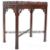 A 20th Century antique style Chippendale revival mahogany silver table / side occasional serving table or coffee table in the Chinese taste. Intricate carved gallery top with fretted scrolls over a flame mahogany surface. Twin pull out slides set to the frieze raised on reeded column sauer kegs united by a fret pierced 'X' stretcher. Measures approx: 75cm x 67cm x 46cm.