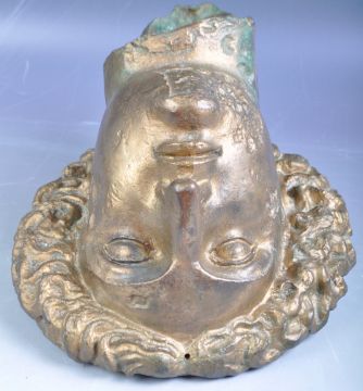 An antique 19th Century gilt bronze ' Head Of Minerva ' bust - after the original Roman statue head of the Goddess Sulis Minerva discovered in Bath c1727. The head being of bronze construction, with gilding to the exterior. Imperfections found in the original are replicated here - including the unusual rectangular section under the chin, and small rectangular piece above the left eye. To the front and rear of the hairline are two holes, likely left over from the casting process as these are not present on the original. Measures approx; 34cm tall. The head clearly being an exact copy of the original (now on display at The Roman Baths, Bath) with identical imperfections and markings, and is the only known example to have been taken directly from the original using the lost wax process. Its origins are undocumented but is believed to have been cast in a mould taken from the original in the mid to late 19th century. The Head Of Minerva was under the care of The British Museum from 1920 to 1947, before it was handed to The Roman Baths. Both The British Museum and The Roman Baths have no records of a copy ever having been made, so this must pre-date both stewardships. A unique and interesting piece of local interest history.