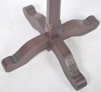 An antique 19th Century polished pewter and oak floor standing orchestra conductors musicians music reading stand lectern having a later added inert light to top with pierced detailing raised on an tall octagonal column over four foot splayed base. Measures approx; 150cm x 50cm.