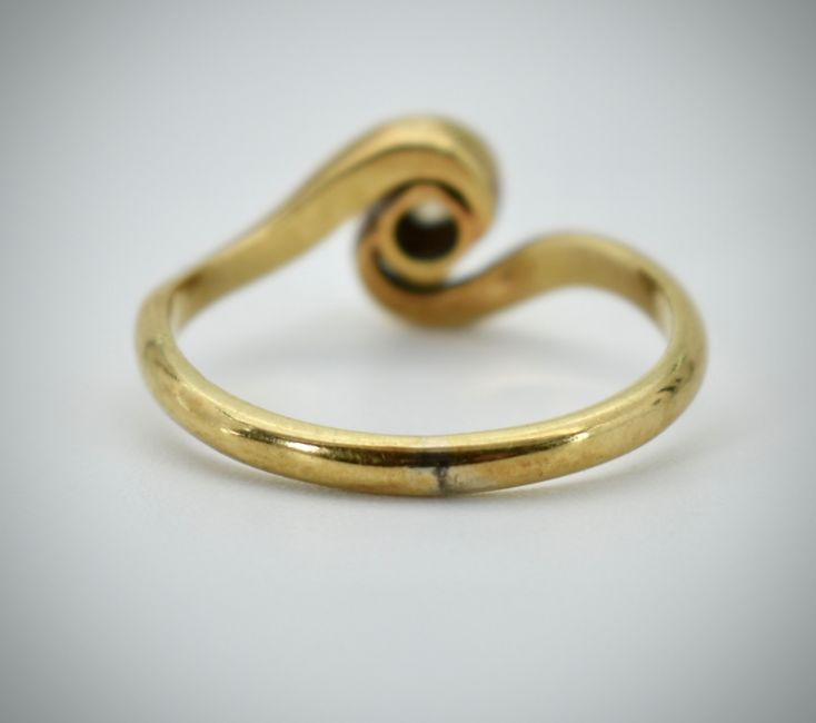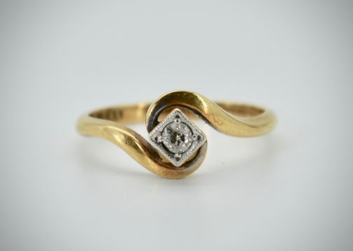 An 18ct gold and platinum diamond ring. The cross over shank with platinum illusion set diamond, estimated diamond weight approx. 0.10cts. The shank marked 18ct & Pt. Total weight 2.96g / Size M