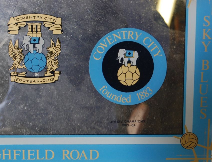 A group of three vintage 20th century football advertising mirrors to include Burnley F.C. , Coventry City F.C. and Newcastle United F.C. All of rectangular form with gilded frame.