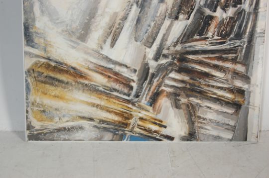 NJ Bartle British 20th Century - A large and impressive oil on board gouache painting entitled North Cornish Coast. Deep white ground with textured painted brown, black and gray hues. Measures: 125cm x 155cm.