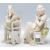 A pair of 20th Century bisque figurines in the form of a couple seated in chairs, the woman doing needle work and man seated cross legged. Both unmarked. Measures 22.5cm tall.