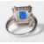 A large .925 sterling silver ladies dress ring having a large central blue stone set within two rows of white stones. .925 stamp to the underside. Gross weight . Measures 1.5cm wide. Ring size S