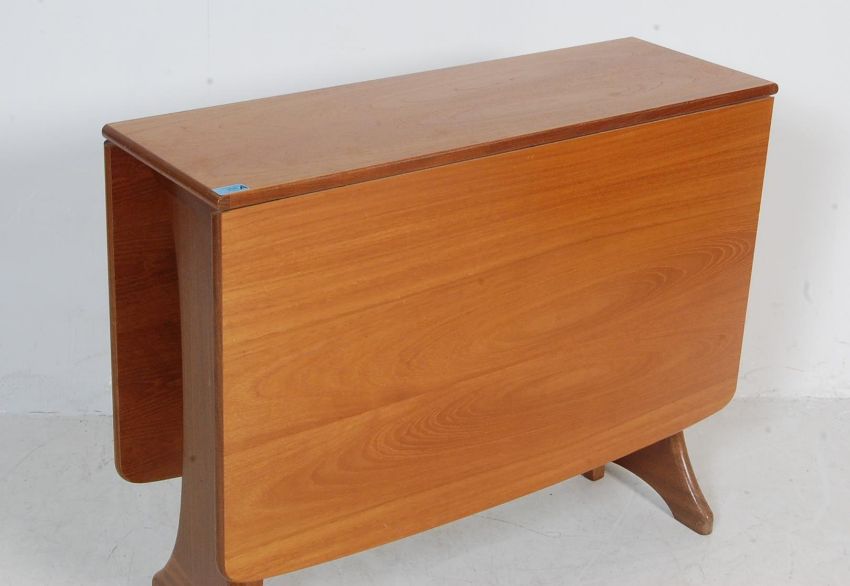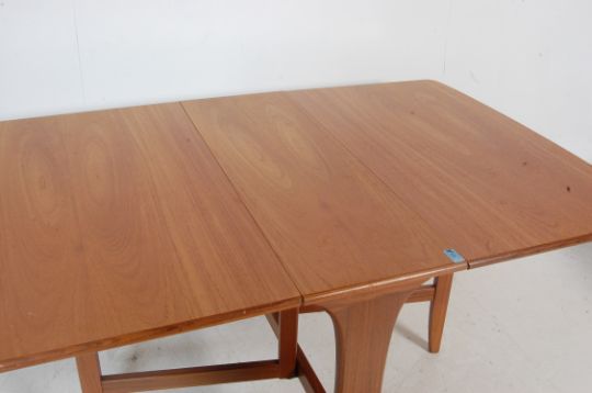 G plan - A retro vintage 1970s teak wood G plan drop leaf extending space saving dining table. The dining table having drop leaves over gateleg supports raised on shaped supportsMeasures, 72 cm Hx 137 cm W x 92 cm D