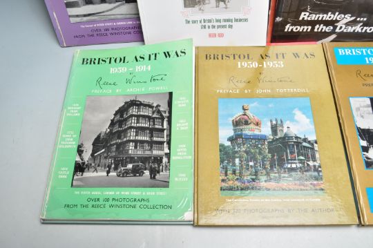 Of local interest - A collection of Reece Winstone Bristol As It Was to include Bristol In The 1940s, 1956-1959, 1914-1900, Bristol Blitzed, Bristol Tram and more. All signed by Reece Winstone. Together with a Graphic Bristol Story and a reprint of the first edition of the one inch Ordnance Survey of Bristol.