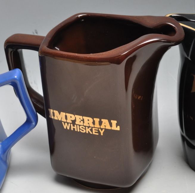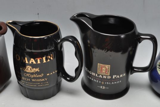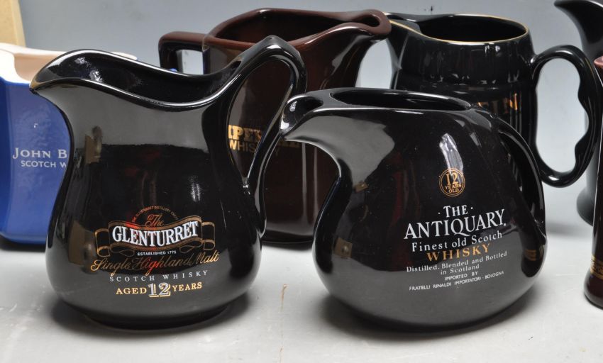 A large collection of vintage retro ceramic advertising promotional pub whisky / whiskey jugs to include Glenturret, Highland Park, Robbie Dhu, The Antiquary, Tomatin, Imperial, Lock Lamond, Carlton, John Begg, The Glenlivet. 13cm high