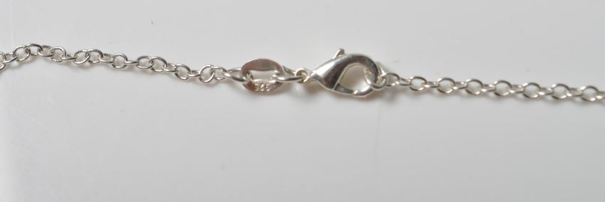 A stamped 925 silver and rubilite pendant necklace in the form of a horseshoe and horse. The necklace comes with a .925 silver chain with a lobster clasp. Gross weight 8.5g. Chain measures 44cm