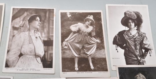 Edwardian Stage Stars. Rare family hoard (x243) of  theatre personalities with all the postally used addressed to the same lady, Blanche Hirschbien a Jewish actress.Mostly real photo type.In old index box. Original collections seldom seen.