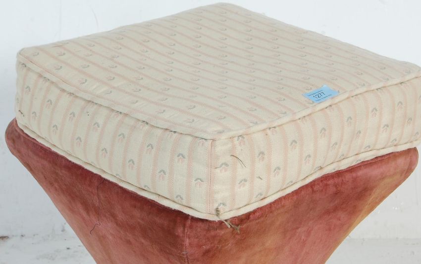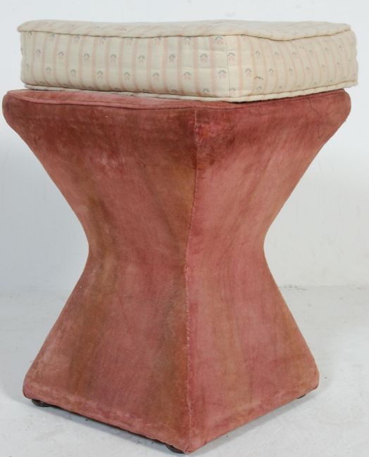 An antique 19th century Victorian hourglass boudoir stool of square form upholstered in period purple velour fabric. Complete with a cushion to the top.