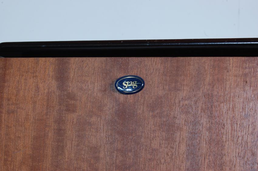 A vintage 20th century Stag “ Minstrel” pattern mahogany bedroom suite comprising of two wardrobes, dressing table and stool, tallboy chest of drawers and bedside table.Measures, 177 cm H x 90 cm W  x 57 cm D