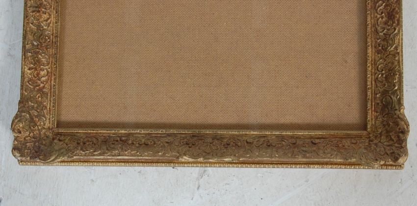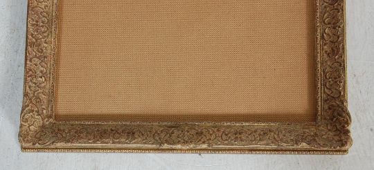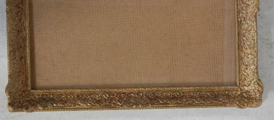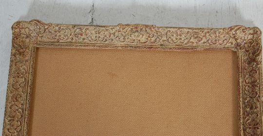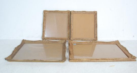 Two pairs of vintage 20th century antique style gilded picture frame. The Baroque style plaster and wood frames of a rectangular form with embossed classical ornate style compo Measures, 51 cm H x 76 cm W