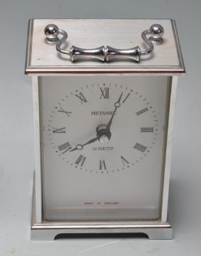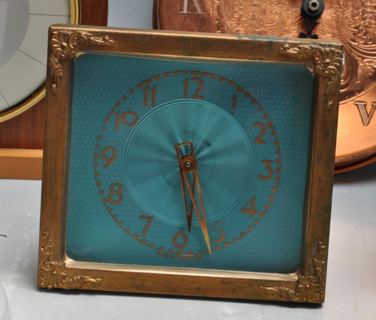 A collection of 1960s retro mid century clocks to include a Hermle skeleton clock, a Metamec carriage clock, two travel alarm clocks and a group of mantel clocks comprised of Westclox and Kaiser.