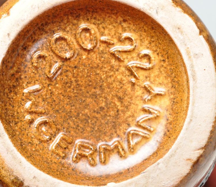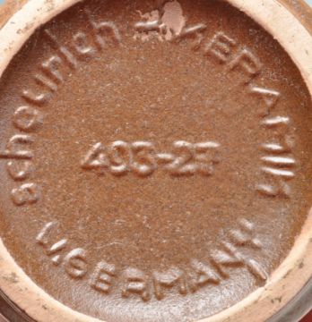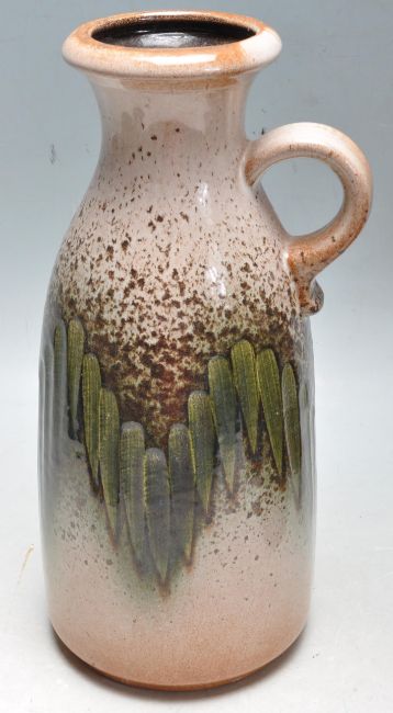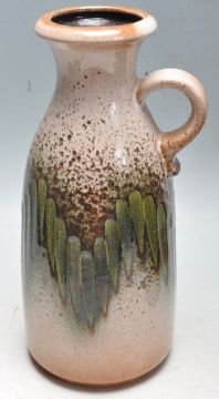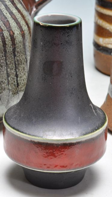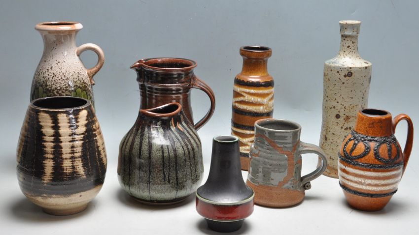 A collection of 1960s mid century retro West German vases and jugs by Schleurich and Carstens to include glazed and fat lava example. Models 414, 1254, 200, 493 all stamped to the bases. Together with a collection of studio pottery comprised of vases, jugs and tankards. Largest measures 27cm tall.