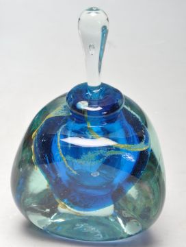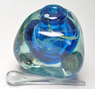 A collection of retro vintage late 20th century studio art glass comprising of a Mdina scent bottle, Whitefriars 9610 aquamarine knobbly vase, Swedish sunburst vase and more. 20cm high