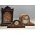 A collection of three early 20th century clocks comprising of a Edwardian mantel clock with a mahogany case, a Napoleons hat mantel clock having an oak case together with an Art Deco mantel clock with sunburst inlay decoration. 38cm x 25cm x 16cm.