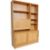 A retro vintage late 20th century oak G plan style bookcase cabinet  having a sectional shelved top with a drop down cupboard opening to reveal a fully appointed interior raised on a rectangular base with a twin sliding door cupboard opening to reveal a shelved interior.Measures, 183 cm H x 123 cm W x 40 cm D