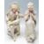 A pair of 20th Century bisque figurines in the form of a couple seated in chairs, the woman doing needlework and man seated cross legged. Both unmarked. Measures 22.5cm tall.