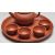 A vintage 20th century Chinese red clay Yixing Zisha tea pot of small form having a tray with four small bowls. Makers seal mark to the base of the tea pot. 15cm diameter