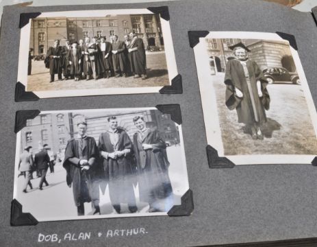 A collection of x8 antique (1910-1950s) part filled and fully filled personal photograph albums. Includes some WWI First World War interest (soldier in uniform etc), two albums of real photographs of Churches and similar building, early vehicle interest, 1950s fishing holiday, family views, day trips, 1950s trips abroad and others. One album being a scrap book, notable for including original Hindenburg disaster newspaper clippings / cuttings. All presumed unrelated, but an interesting collection.