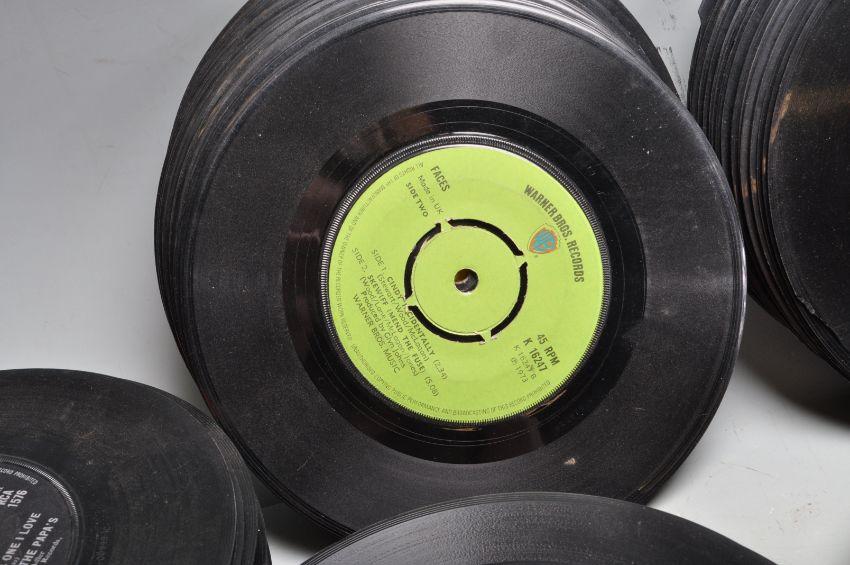 A collection of approx 150 vintage vinyl 45rpm 7inch singles to include David Bowie, Wilson Pickett, Andy Williams, Elvis Presley, Black Sabbath, Electric Light Orchestra, Thin Lizzy and more.