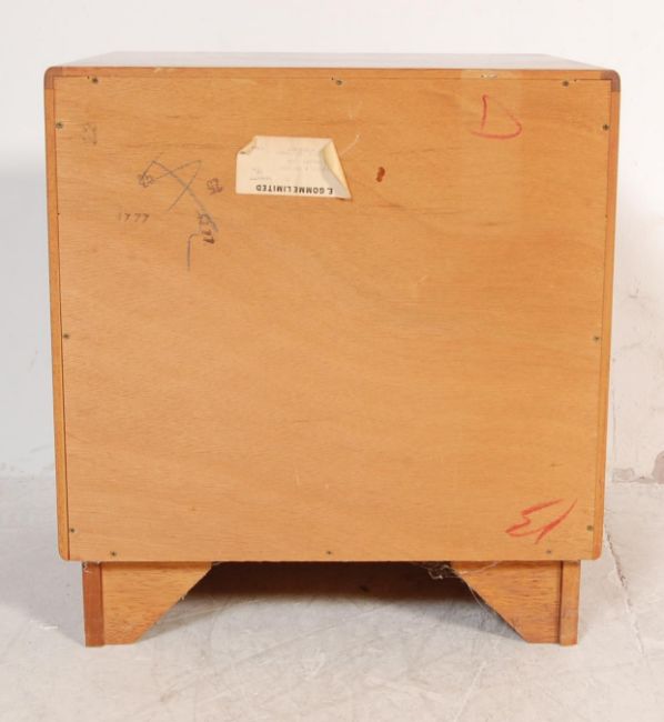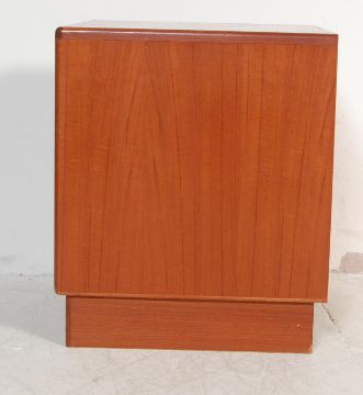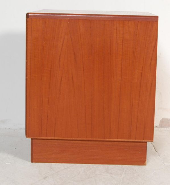 A G-Plan mid century Fresco pattern teak wood pedestal bedside chest of drawers being raised on a plinth base with short drawers having recessed handles.Measures, 51 cm H x 48 cm W x 43 cm D