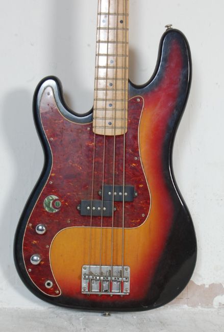 A contemporary Westfield Bass Guitar having a sunburst body with marbled effect scratchplate.Makers stamp to the headstock