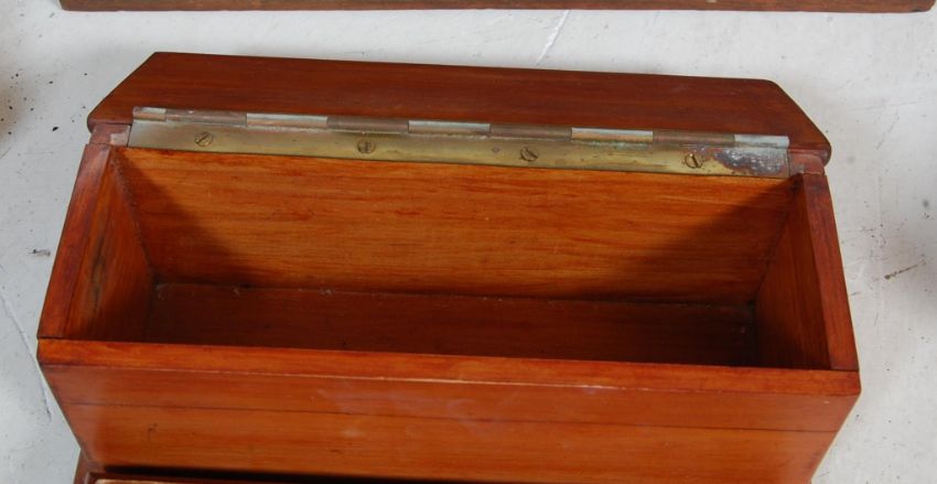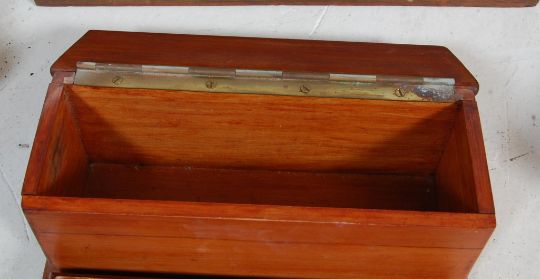 A collection of vintage retro 20th century wooden crates and wooden tool boxes of various sizes and form with handles.Measures, 15 cm H x 50 cm W X 25 cm D
