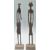 A pair of African tribal cast metal African tribal figurines of a couple of moulded elongated form, each raised on stepped square bases. 28cm high