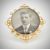 A 9ct gold locket brooch - pendant. Of roundel form with central window within a scroll worked pierced setting having pin verso. Marked 9ct. Total weight 8.7g / Measures 4.5cm x 4.5cm